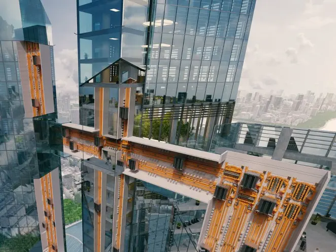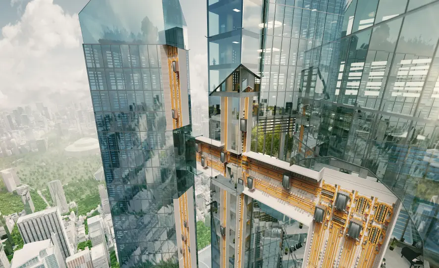 Imagine increasing elevator capacity and optimizing traffic while reducing the system’s weight and footprint. Imagine freeing tall building design from the constraints imposed by conventional elevators.