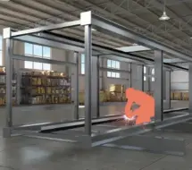 1、工厂生产:工厂预制钢结构井道和电梯模块化生产