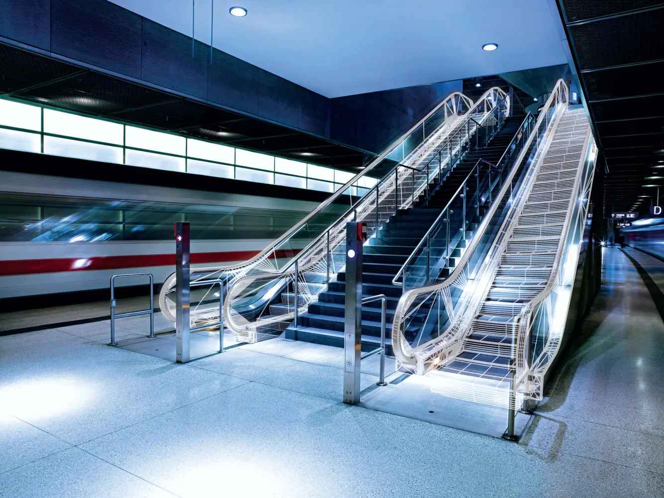 梯级间隙照明安装在梯级的下面,绿色的 LED 灯让梯级轮廓更为清晰,方便乘客安全、便捷地踏上梯级。