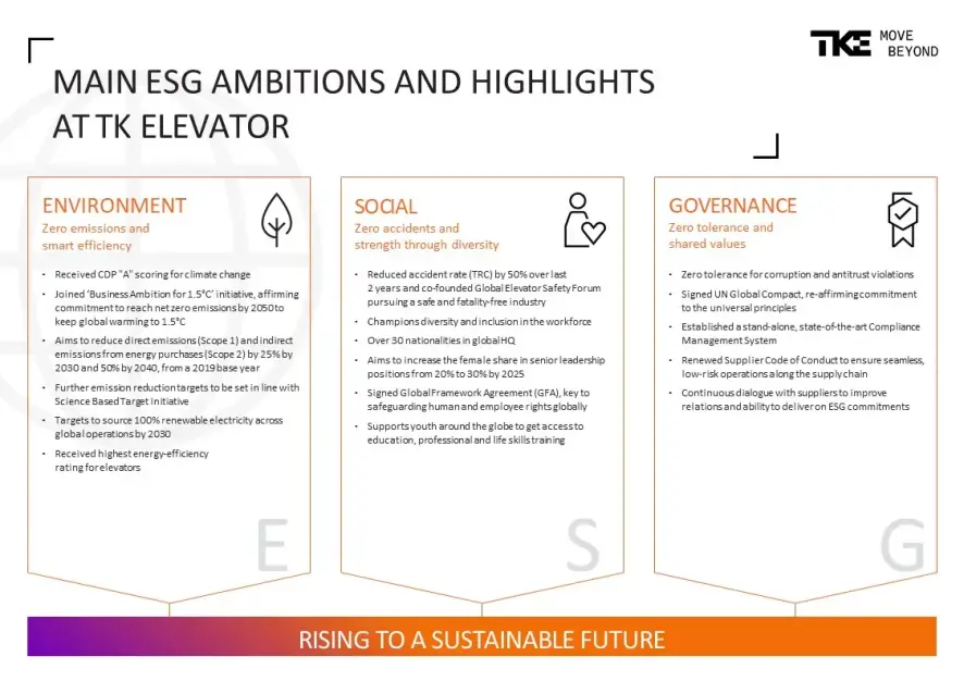 TK Elevator provides information on sustainability activities and targets in new ESG report
