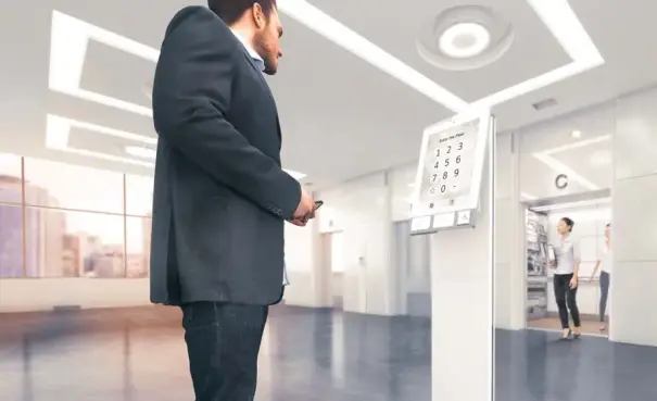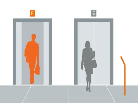 Passengers use the kiosk to select their floor. You can add custom button labels and logos to make the process even easier.