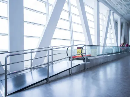 iwalk采用便携装运的标准化模块设计,长度为45米的iwalk自动人行道,只需一辆卡车即可运输。模块增减方便,即便在施工最后一刻也可增减调整人行道的长度。